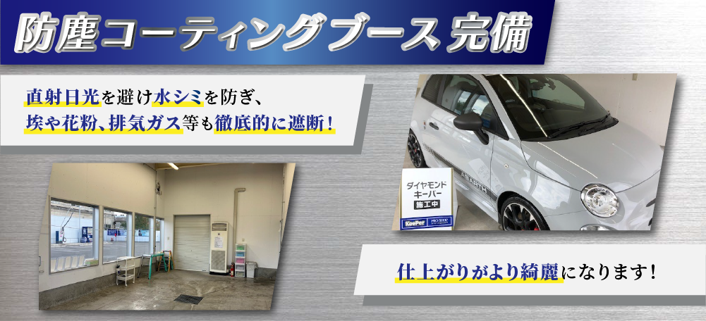 また、細かい埃や花粉、排気ガス等を遮断するスペースで研磨やコーティングを施工することで、仕上がりがよりキレイになります!