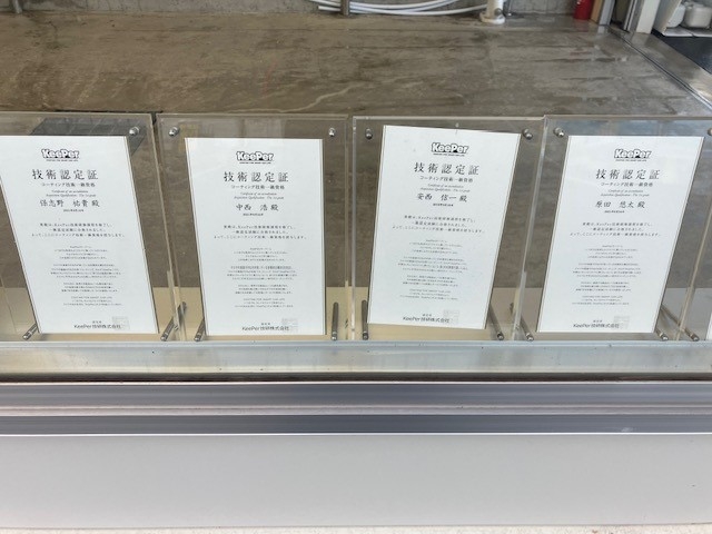 姉崎店には、EXキーパー資格者2名、キーパーコーティング技術1級資格者4名、キーパーコーティング技術2級資格者2名