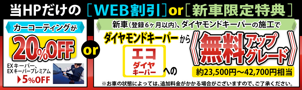 | 特徴 | ダイヤモンドキーパーのボディへの施工に加えて、さらに、ガラスコーティングを下記の「施工箇所」に施工いたします! |